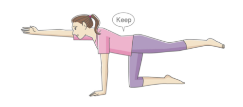 右手と左足を上げバランスをとる
