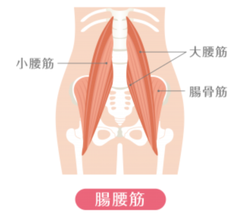 背骨と大腿骨をつなぐ筋肉で、太ももを引き上げる動作に使われます。上半身と下半身をつなぐ筋肉なので、体幹の安定のために働きます。