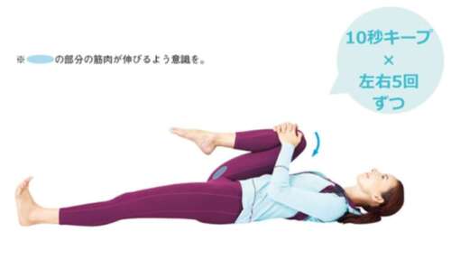 仰向けで片脚を胸に引き寄せるストレッチ: