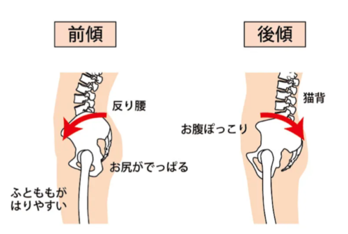 ■■骨盤の動きが制限される ハムストリングは骨盤と膝をつなぐ筋肉で、骨盤の動きに大きな影響を与えます。ハムストリングが硬くなると、骨盤の前後の動きが制限され、骨盤が後傾(後ろに傾く)しやすくなります。この状態が続くと、腰椎(腰の骨)に過剰な負担がかかり、腰痛を引き起こす原因となります。