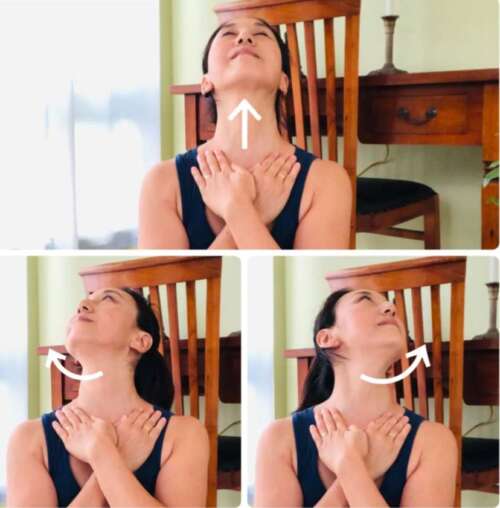 ★顎を上にあげたら左右に顎を10回程度動かします。この時、呼吸は止めずに気持ちの良い範囲で動かしましょう。