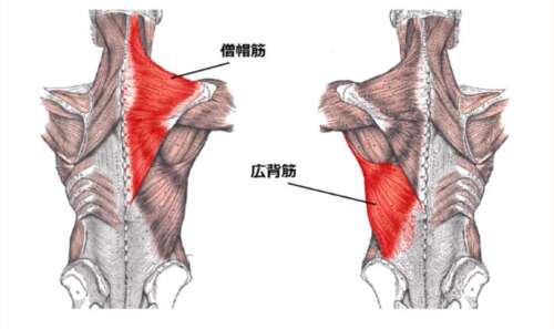 ■■首から肩関節・背骨へ広がる「僧帽筋」