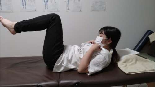 股関節90°の位置まで持ち上げたら、ゆっくりとおろします。