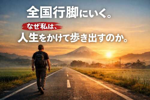 富士山に続く一本道を、ひとりの男性が朝日へ向かって歩き出すシーンを切り取った画像です。「全国行脚にいく。なぜ私は、人生をかけて歩き出すのか。」という言葉は、痛みの常識を変え、延命ではなく“動ける時間を伸ばす延動”を日本に広めるという決意を象徴しています。旅立ち、覚悟、そして使命を視覚的に表現したビジュアルです。
