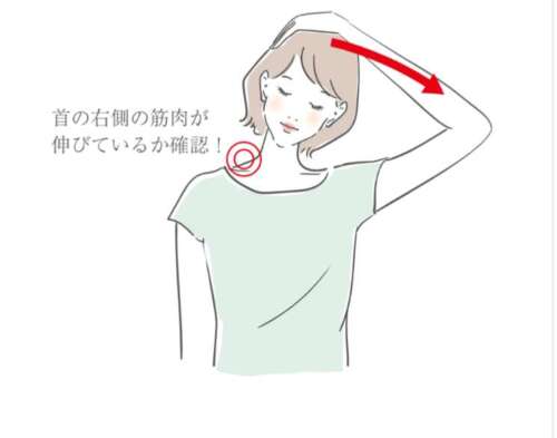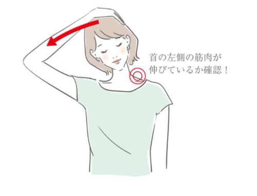 首横の筋肉を伸ばすことを意識して、首をゆっくり右真横に引き寄せる