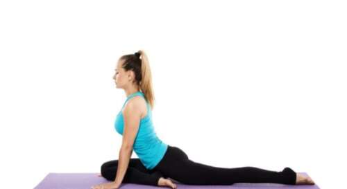 4 お尻の右側の筋肉を伸ばしながら30秒間キープ。