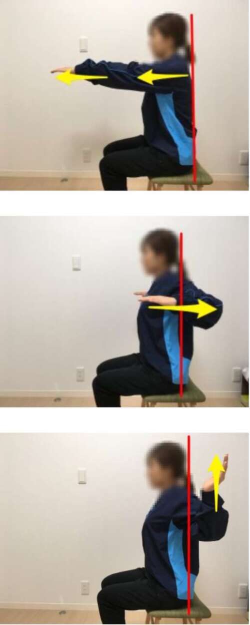 姿勢を真っ直ぐに、両手を前方へ伸ばす。