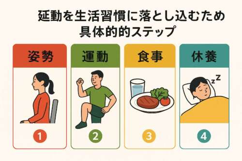 ✅ 姿勢リセット・小運動・食事と休養・定期チェックがカギ