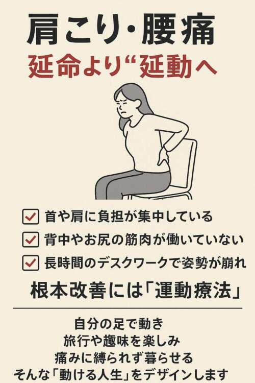 肩こり・腰痛 ― マッサージでごまかさない。延命から“延動”へ