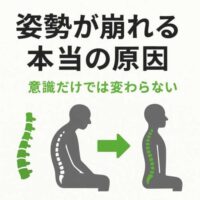 【姿勢が崩れる本当の原因】 こんにちは。 リハビリジム彩【IRODORI】 理学療法士の臼井宰介です。 ■姿勢は“意識”だけでは変わらない 「背筋を伸ばそうと意識し …