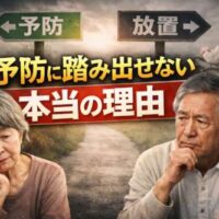 「本当は予防したほうがいい」 多くの人がそう感じているのに、実際に“動き出す人”はごく少数。   では── なぜ、人は予防に踏み込めないのか? そこには、いくつかの共通する“心理の壁”があります。 1. 痛みが …